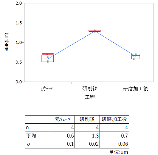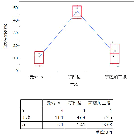 8インチ SiC 加工工程ごとの3pt-Warp 精度 |
