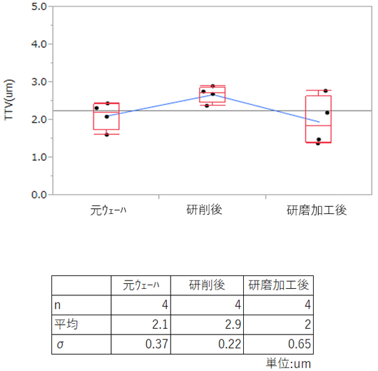 8インチ SiC 加工工程ごとのTTV 精度 |